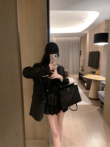 小香風気質カジュアル文字ビーズ刺繍襟付きスーツコート25年春新作