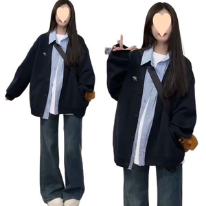 アメリカの偽の2つの帽子のコートの女性春秋2025の新型の街頭風のデザイン感は格子のジャケットをつなぎ合わせます。