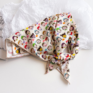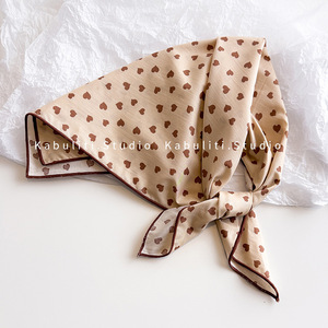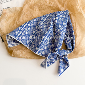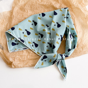 韓系の新型の幾何学の小さい方の巾の包頭のシルクの巾の女性の緑色の春秋の冬の首の周りの首のガーゼの薄いマフラー