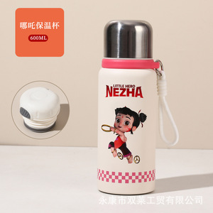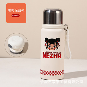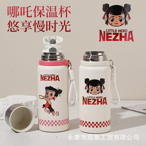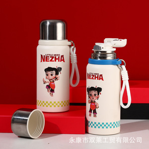 25年の新型のナタクのダブルドリンクの保温カップ316ステンレスのかわいいコップの大容量の縄の跳ぶコップ