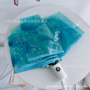 透明水族館海洋三つ折り傘全自動ネット赤直柄傘折り畳み児童成人クラゲクジラ写真