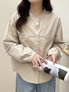 2025春の新型大衆感韓系純色長袖シャツは肉を遮って痩せています。