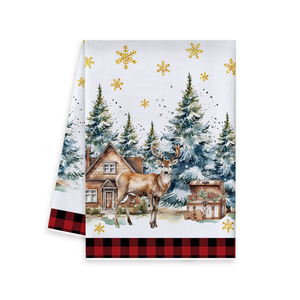 国境を越えた代理はクリスマスキッチンの皿洗いタオルを貼ることができる赤いクリスマスプリント食卓装飾祝日タオル