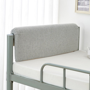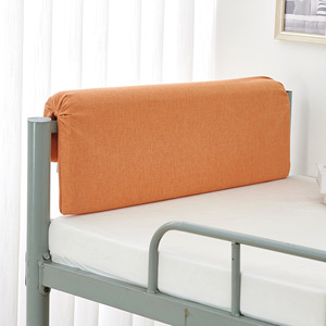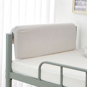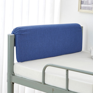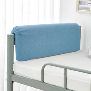 学生寮のベッドの上の寝室のシングルベッドのクッションの上に枕を敷いて腰を保護します。