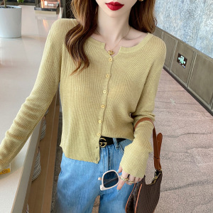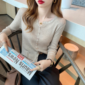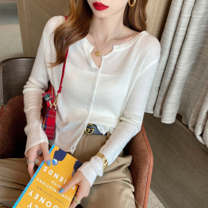 長袖ニットの底のシャツの女性の春の服の2025新型のvネックの薄いタイプのカーディガンのセーターのオーバーは身を修める中に上着を掛けます。