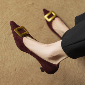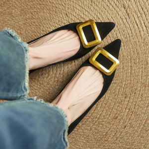 羊の反絨毯の復古風の金属は先の中の細いかかとの浅い口の靴の女性の2025年の春と秋の新型の足を掛けます。
