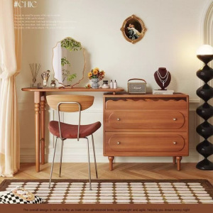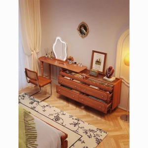 実木化粧台化粧台寝室キャビネット一体小型レトロベッドテール伸縮化粧テーブル収納キャビネット