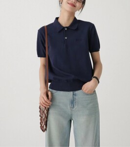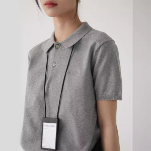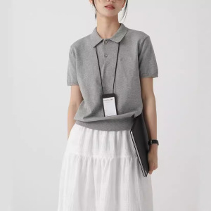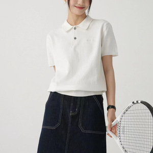 レトロpolo襟半袖ニットtシャツ薄い女性夏の新型シンプルなスポーツ風カジュアルな肩の上の服