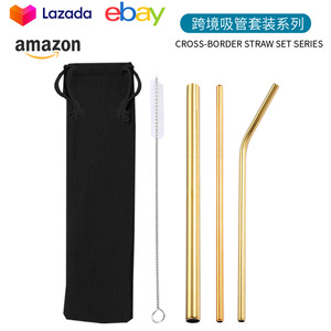 クロスボーダー起爆ステンレスストロー飲料ミルクティーカラーカップチタンメッキ金属アマゾン304ストローセット