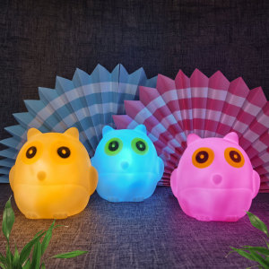 卸売りの露店のアイデアのおもちゃのフクロウの発光のかわいいledの小さい夜の明かりのベッドのヘッドライトのゴムのおもちゃ