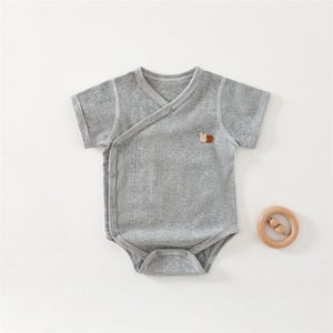 純綿の半袖ジャカードの赤ちゃんのお尻の服の夏の薄いタイプの半袖の赤ちゃんの三角の服の新生児は服を登ります。