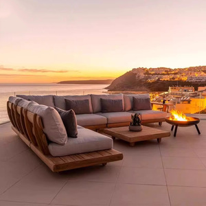 屋外チーク材ソファー庭園露天北欧実木怠け者レジャーチーク材防水茶セット家具
