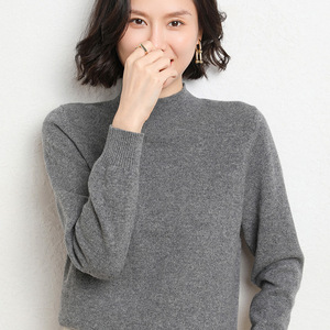秋冬の新型の半高襟のセーターの女性のゆったりした長袖は底を打って頭の大きいサイズのニットの上着を掛けます。