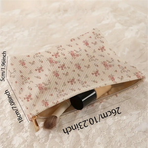 SHEINクロスボーダーTEMU漫画手描き田園砕花プリントコーデュロイジッパー収納袋軽量化粧バッグ