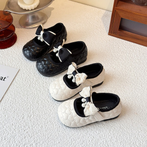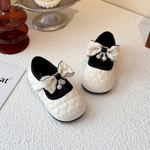 女の子の小さい靴の黒色の2025新型の春の子供の王女の靴の柔らかい底の小さい女の子の英倫風の靴の春の靴