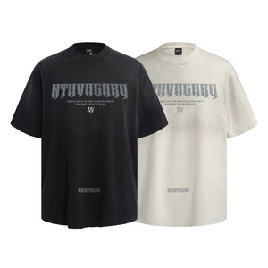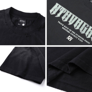 潮牌高街半噴破洗水アルファベットプリント半袖tシャツ男女夏ヒップホップ街頭ゆるい上着