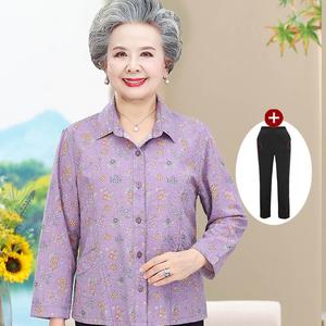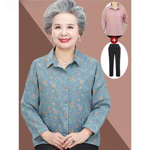 おばあさんは春と秋の純綿の長袖のシャツの中でお年寄りの秋の服の女性の洋風のお母さんの薄いコートのおばあさんの服を詰めます。