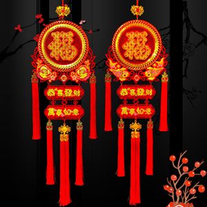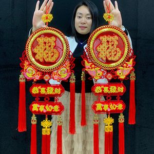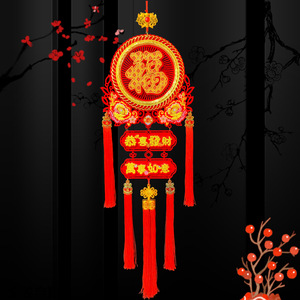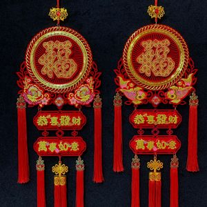 牡丹と双魚のフェルト金メッキの「福」の文字の三つセットの飾り物、新年のお祝いの新居の装飾用吊り下げ飾り