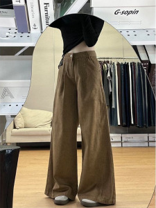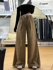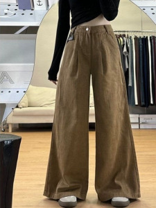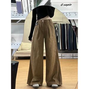 アメリカの高級感の葉の黄色の広脚のジーパンの女性の春の新型のレトロでゆったりしています。