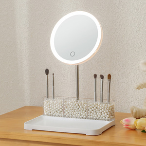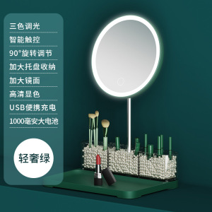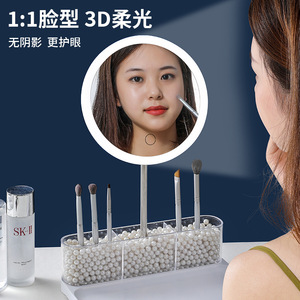 LED付き化粧鏡 卓上化粧鏡 デスクトップ補助照明付き高画質美容鏡 学生寮用鏡 3段階調光