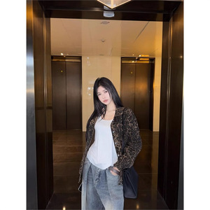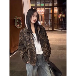 アメリカのレトロファッションヒョウ柄長袖デニムジャケット