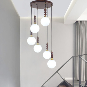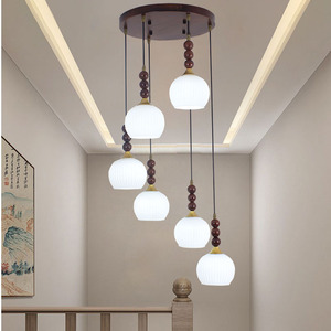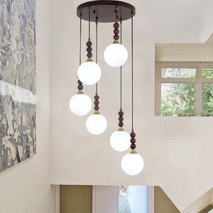 中古風階段シャンデリア復古マンション複式楼実木客間食堂灯loft回転階段吊灯具