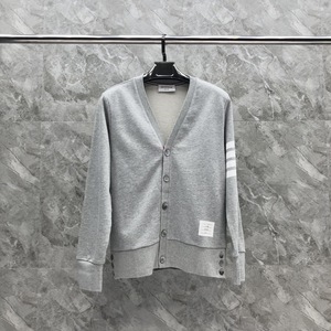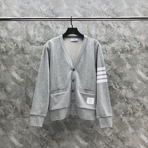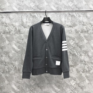 TB秋の新しい色織り縞四棒ポケットなし五ボタン綿カーディガン男女カップル同金