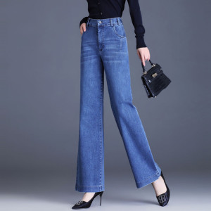 中年の広脚ジーンズの女性ズボンがゆるい春秋2025年の新型弾力性中高年直筒母ズボン