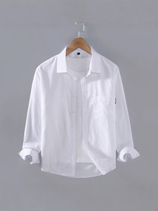 重ポンド純綿オックスフォード織シャツ男長袖春秋コートデザイン感ゆったりカジュアルシャツ男