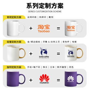 【現物】手描きの紫色の陶磁器のカップはロゴを印刷できます。シンプルな家庭用マグカップのギフトカップです。