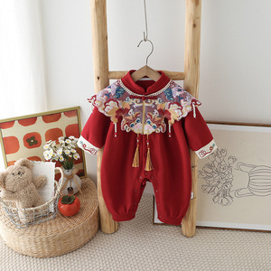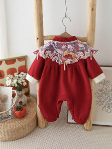 春の新しい中国式の女の子の赤いお祝いの歳のドレスのワンピースの春と秋の金魚の雲の肩は服を登ります。