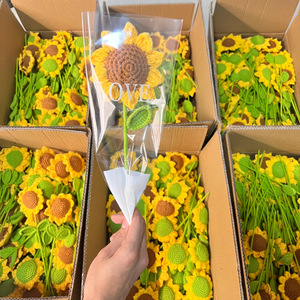 完成品編み純手作りニットヒマワリ笑顔毛糸花diy教師の日プレゼント誕生日太陽花