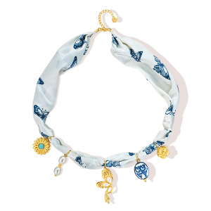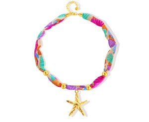 カラフルシルクスカーフ付きヒトデネックレス