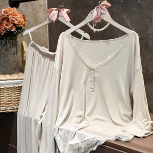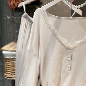 2025パジャマ夏レース快適柔らかい長袖ズボンパジャマvネック家庭服セット