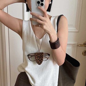 2025新型百合豹紋皮革磁気吸引首メガネのネックレス