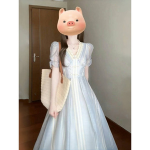 工場直販2025項フランスvネック高級感超きれいワンピースレースがきれいで独特で優しい