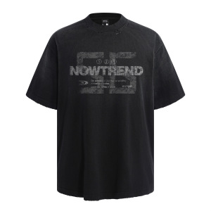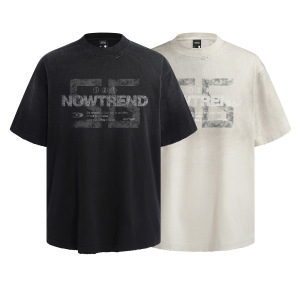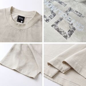 アメリカの街頭アルファベットプリント半噴破洗半袖tシャツ男性夏ゆるいカップル半袖上着