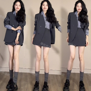 【スリーピーススーツ】ブレザー+ストライプシャツ+スカート