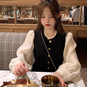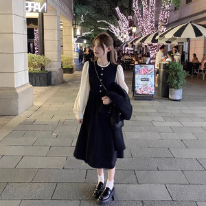 2025新型のフランス式の小さい香風のキキキョウのスカートの女性の秋の太っているmmは明らかにやせて腹の小さい背のファッションのワンピースの潮を遮ります