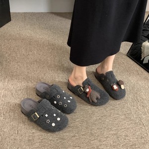 森系の毛はリベットの水ドリルの厚い底のベーケンの靴の女性の2025新型の復古の包頭の半スリッパの女性はスリッパを履いています。
