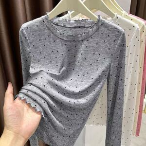 天糸の木の耳元の長袖のtシャツの女性の薄い金の小さい透き通った丸首の波は身を修める日焼け止めの底のシャツの中で上着の夏を掛けます。