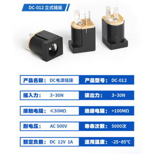 DC-012A DC電源ソケット180度3足耐高温良質DC電源コネクタ母座