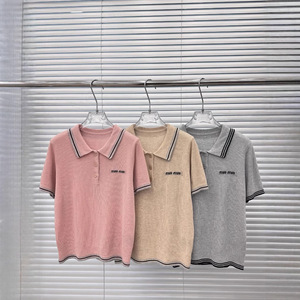 Mm家25ss春夏新作アルファベットジャカード衝突色襟折りニット半袖