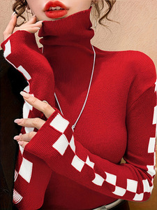 2025国境を越えた新しい山の高襟ニット盤の格子が底を打って身を修めるニットウェアの秋冬ファッションの洋風