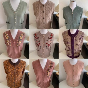 厚手の中高年向けマザーズウェア、カーディガン、ウールセーター、ゆったりとしたセーターコート、長袖、外で着用可能