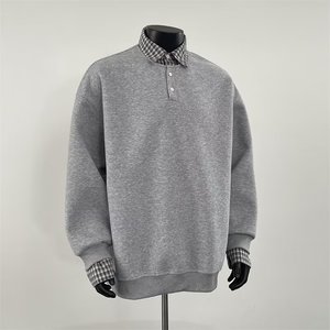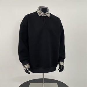 アメリカの偽の2つのつなぎ合わせの襟の男性の潮のブランドの春の新型のカップルの項のゆったりしているpoloシャツの長袖のtシャツ