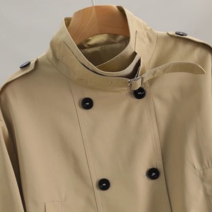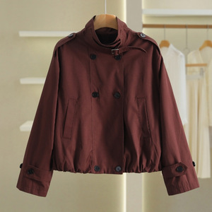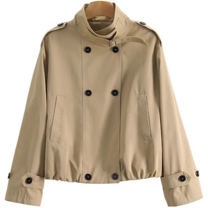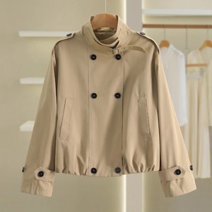 ショートスタイルのトレンチコートの女性秋の英倫風のゆったりとしたカジュアルな輪郭の形の立襟の小さい子供のカーキ色の経典の気質のコート