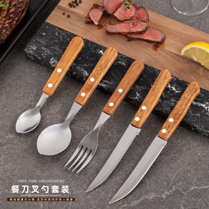 ステンレスクリップ食器ナイフフォークスプーン5点セットホテルステーキナイフフォークスプーン新商品創意木柄ステーキナイフフォーク