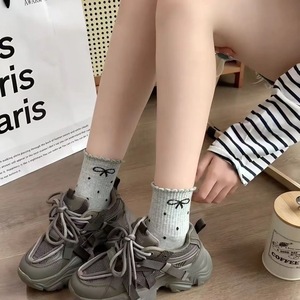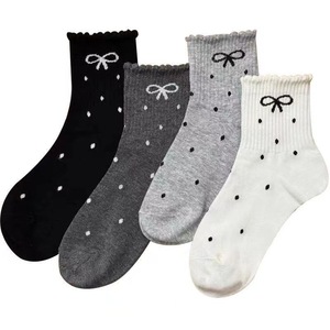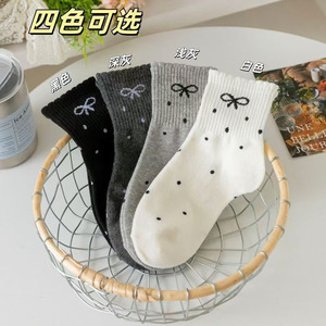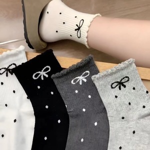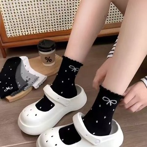 秋季女袜波点花边蝴蝶结袜中筒袜百搭潮袜学院风黑白女袜日系网红