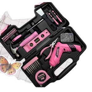 ピンク多機能ギフトツールボックス家庭用修理セット手作りDIY携帯少女収納ツールセット